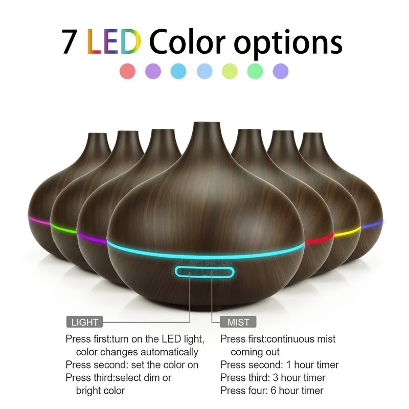 1pc 19.36oz/550ML Electric Aroma Diffuser; Essential Oil Diffuser; Air Humidifier; Ultrasonic Remote Control Color LED Lamp Mist Maker