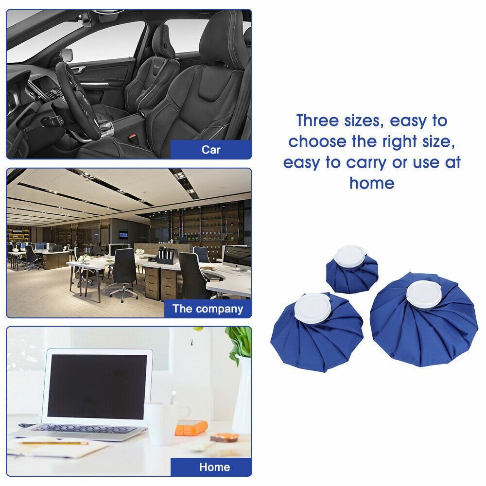 • 3 SIZE DESIGN FOR DIFFERENT REQUIREMENTS Small 6 and medium 9 soft and reusable ice bag for children and teens, large 11 ice pack for adult. Our reusable ice bag for injuries is a must-have product for sport injuries, pain relief, muscle aches and first-aid etc.