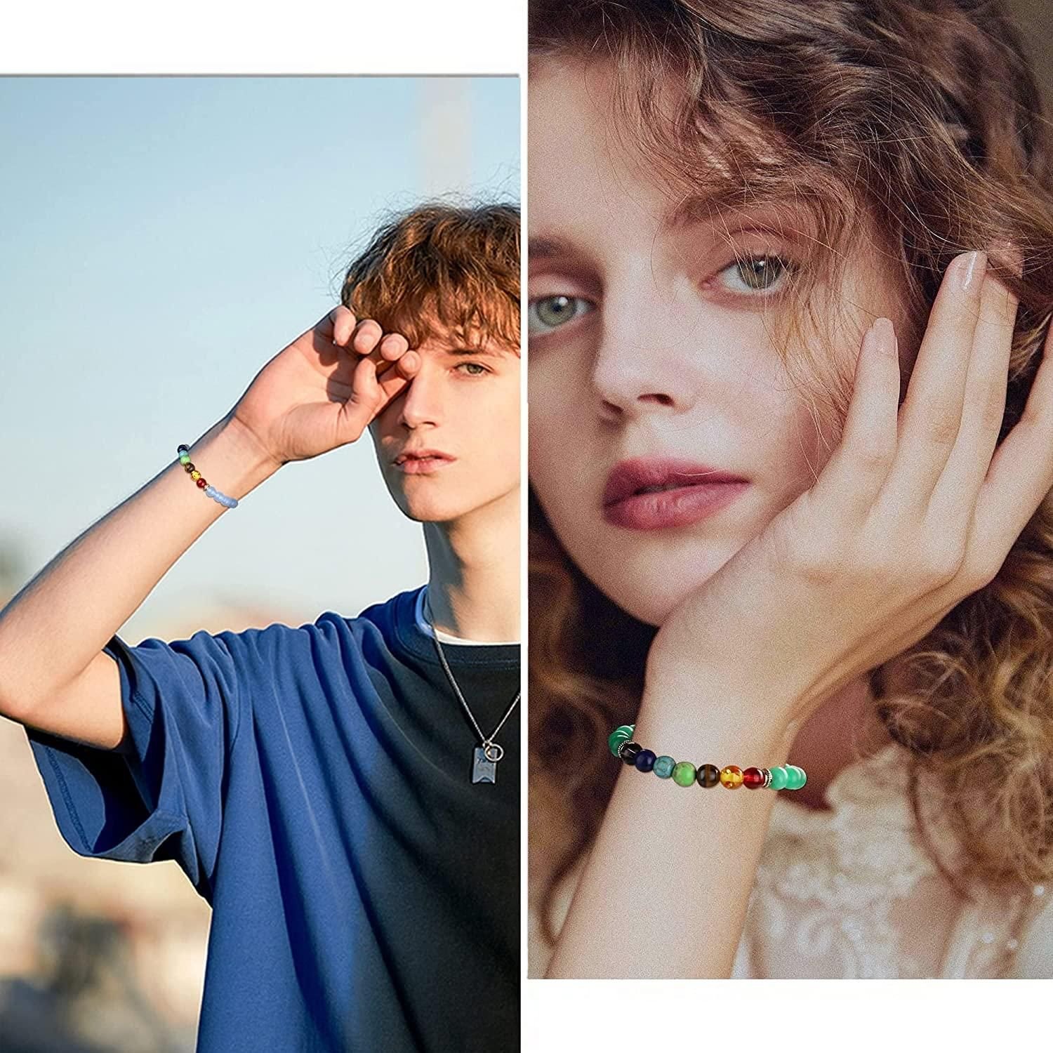 Home > Bracelets 10Pcs 8mm Beaded Bracelets for Women Men Natural Lava Rock 7 Chakra Healing Stone Bracelets Yoga Energy Protection Gift Anxiety Bracelets Ar