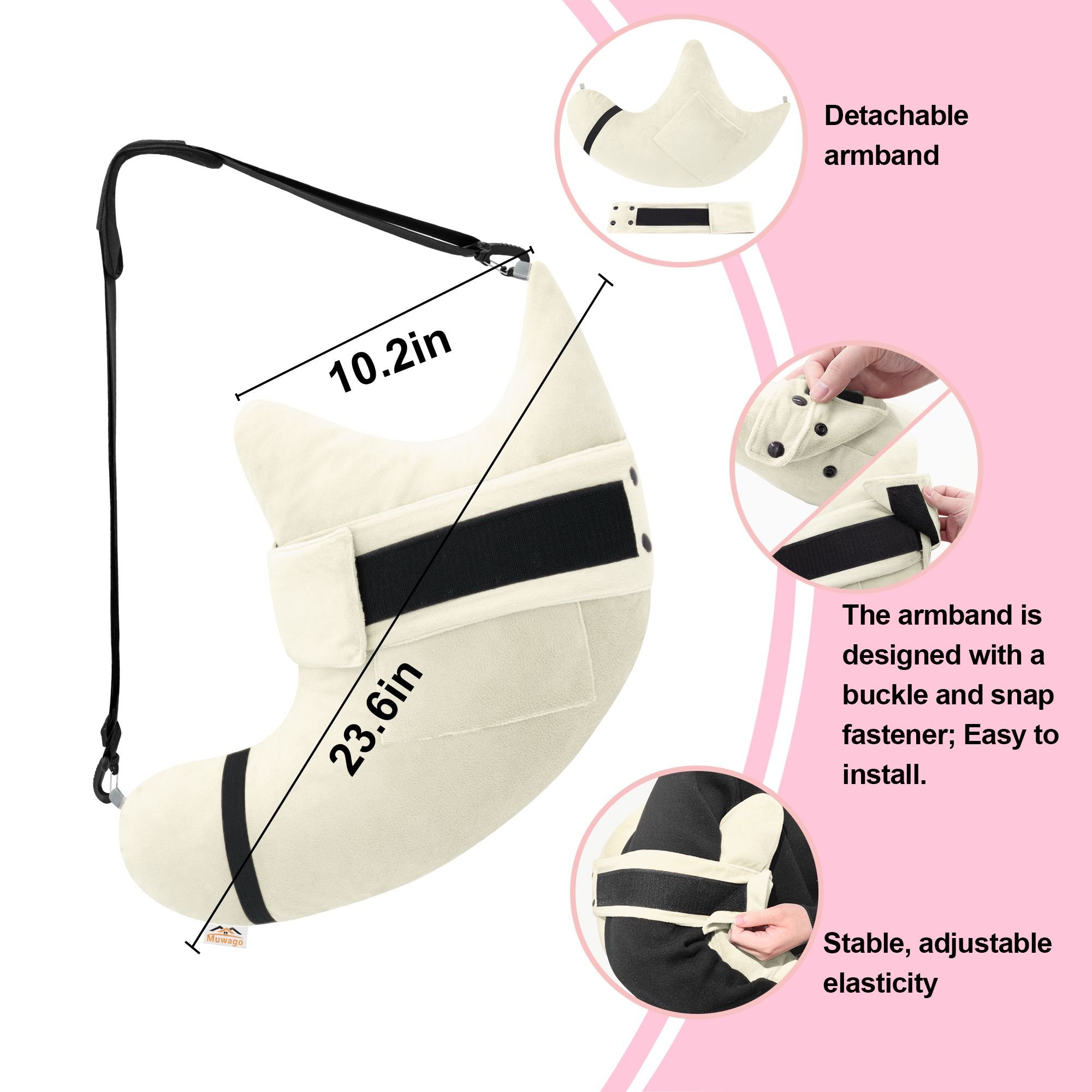 2.Rich and reliable configuration: Removable and adjustable shoulder straps along with side arm straps, plus adjustable arm elastic bands, ensure our pillow stays securely positioned exactly where you want it without slipping. This allows you to sleep comfortably on your side all night long. We've also sewn a storage pocket on each side of the pillow, making it easy to add cold or heat packs for your specific needs.