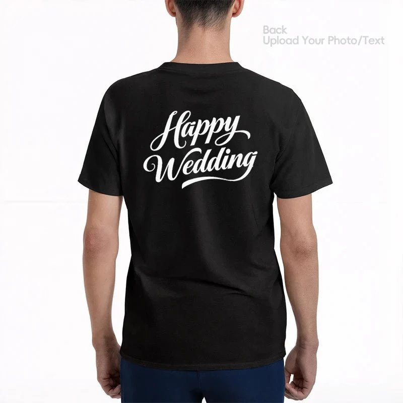 Wedding Custom Tee ShirtProduct DetailsCustomization: Upload two photos, double-sided printPrinting: Premium double-sided printingMaterial: 100% cotton, 230gsmStyle: Classic crew neck short-sleeve teeSizes: S to 5XL availableCare: Hand wash or machine wash (max 45°C), do not bleach, avoid long soakWhy Choose a Wedding Custom Tee?