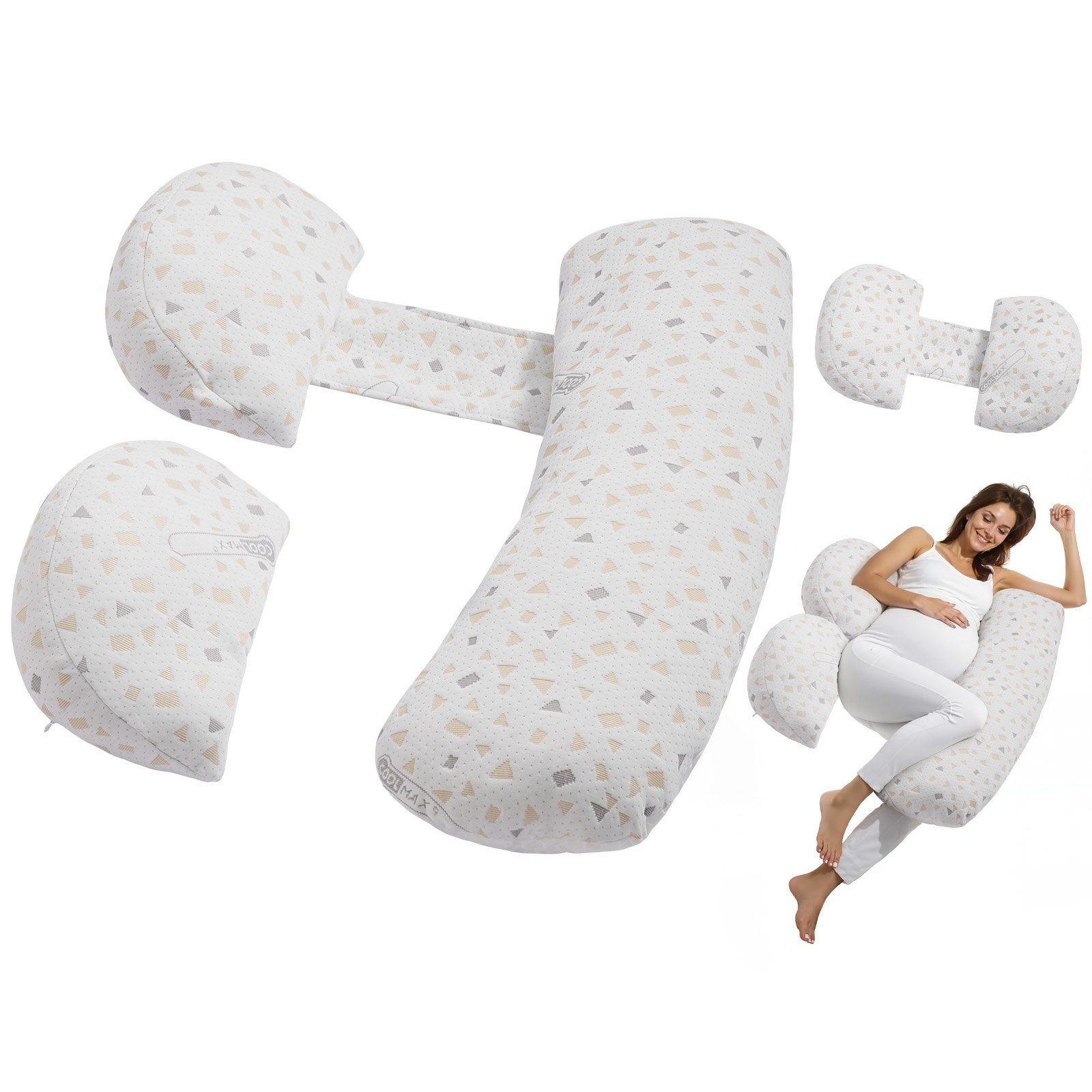 1.Multi-Functional Combination Pillows: This versatile pregnancy pillows include a J-shaped pillow + 2 wedge pillows, secured and adjusted with velcro straps for customizable use. It easily transforms from H-shape to L-shape to U-shape, offering tailored support during early, mid, and late pregnancy for ultimate comfort.
